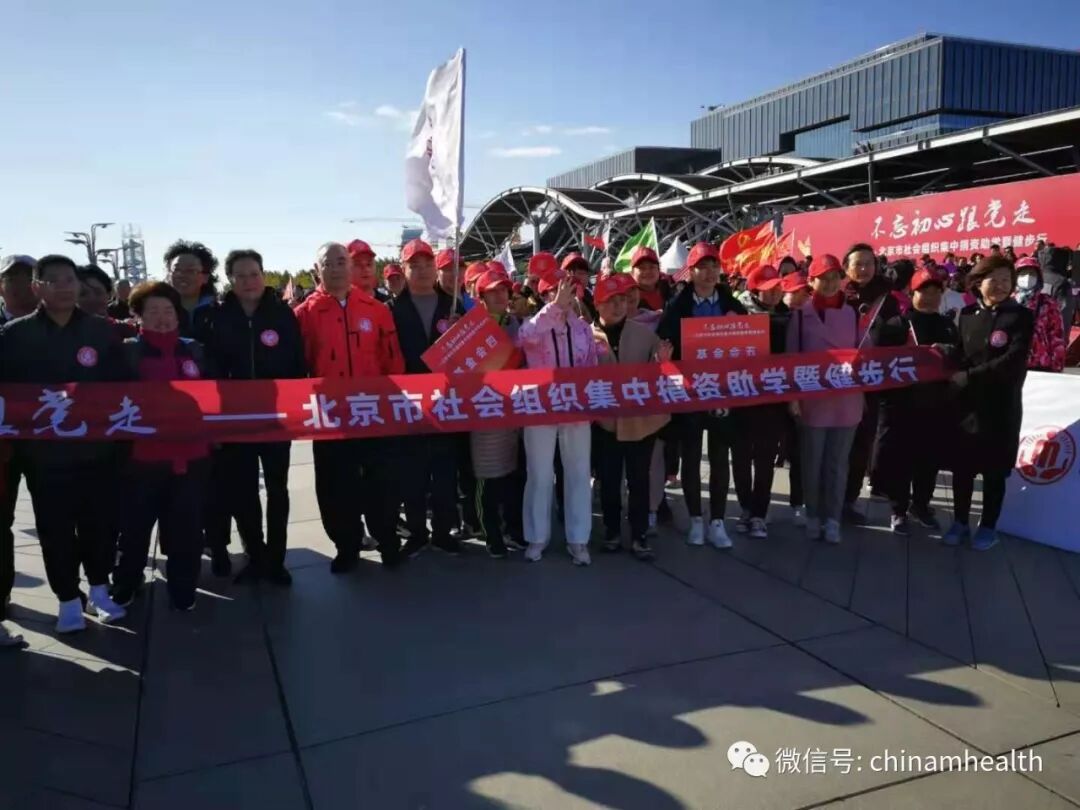 10月25日,由北京市委社会工委市民政局、市体育局、市扶贫协作和支援合作办公室、市体育总会、市行业协会商会综合党委共同举办的“不忘初心跟党走——北京社会组织集中捐资助学暨健步行”活动在奥林匹克森林公园南园举办。来自700余家社会组织代表、负责人、以及活动方有关领导1200余人参加了现场活动。